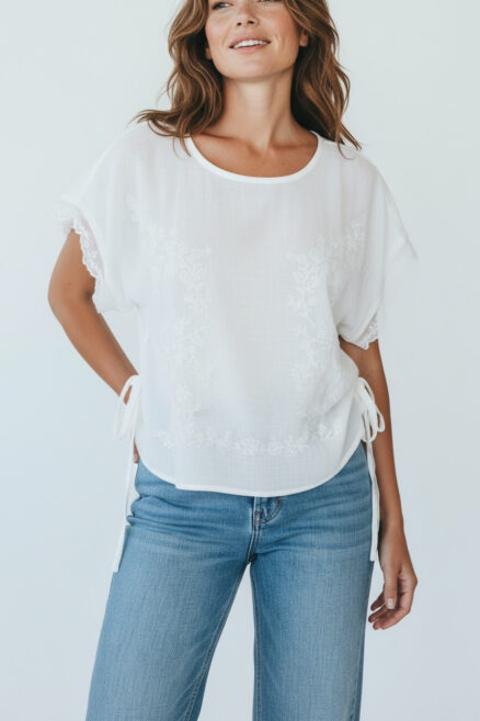 Blusa con multi costuras en manga y parte inferior 100% algodón