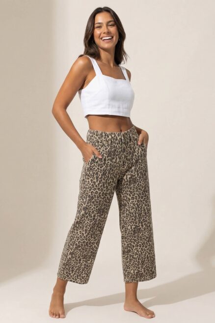 Pantalón animal print en tela liviana con bolsillos funcionales