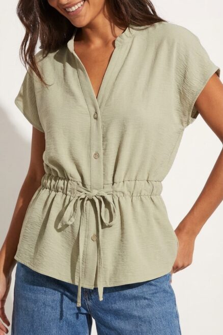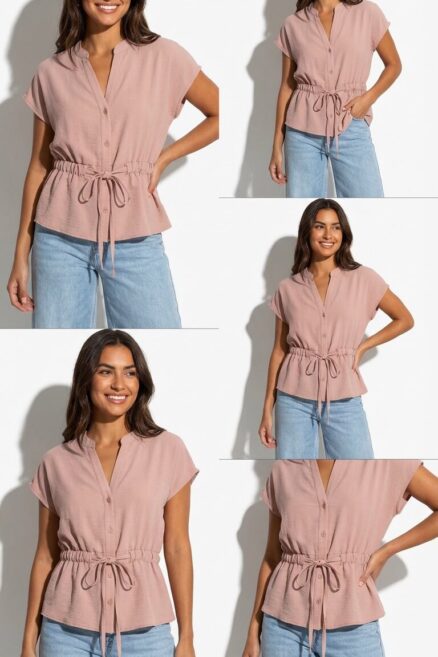 Blusa con elástico en la cintura y lazo frontal