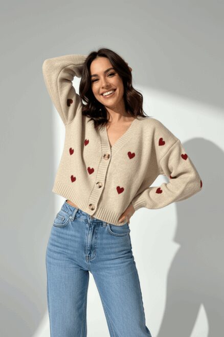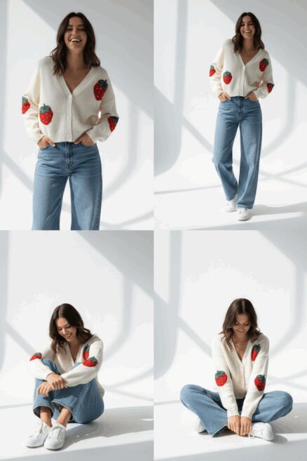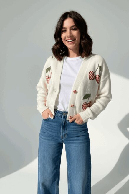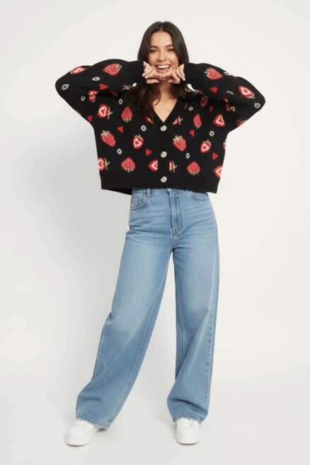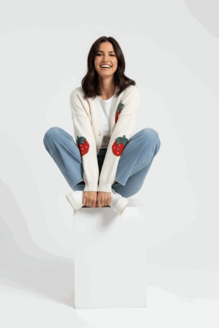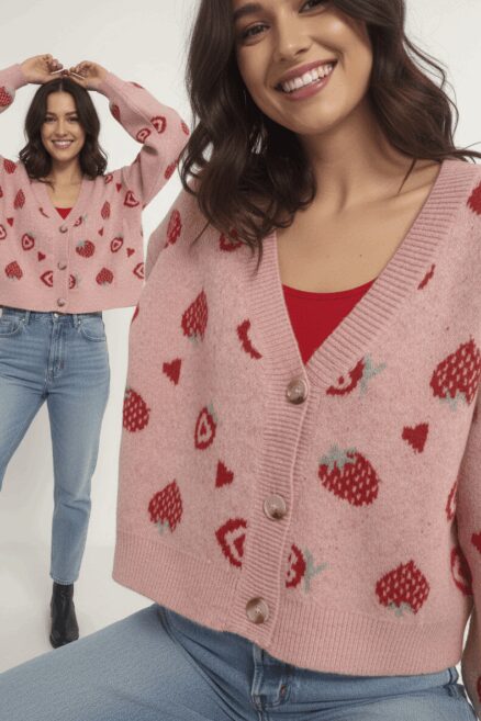 ₡27,900.00Sweater tipo cardigan con estampado de fresas