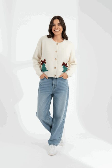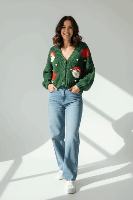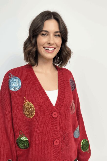 ₡29,900.00Sweater tipo cardigan navideño con lentejuelas -