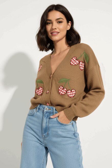 ₡27,900.00Sweater tipo cardigan con cerezas de cuadros -