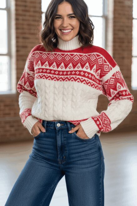 ₡21,900.00Sweater cuello alto con motivos navideñosSMLXL -