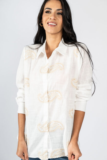 ₡21,900.00Blusa con bordado de flores y mezcla de linoSML -