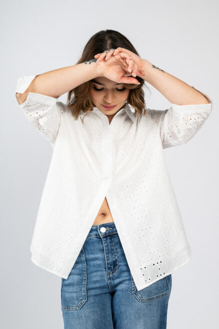 ₡24,900.00Blusa manga tres cuartos en librete y bordado en romboSML -