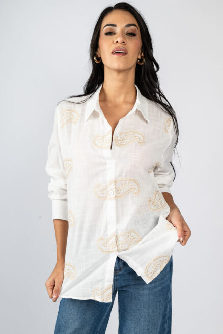 ₡21,900.00Blusa con bordado de flores y mezcla de linoSML -