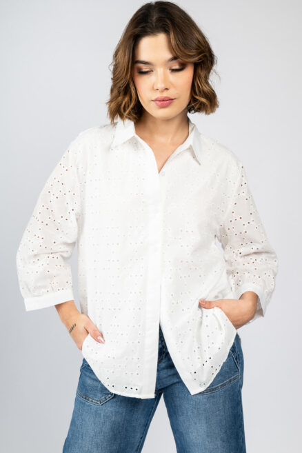 ₡24,900.00Blusa manga tres cuartos en librete y bordado en romboSML -