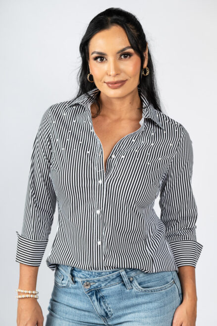 ₡21,900.00Blusa holgada con botones forrados y aplicación en mangas y escoteSMLXL -