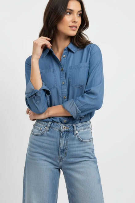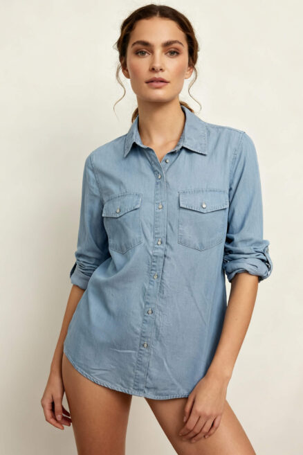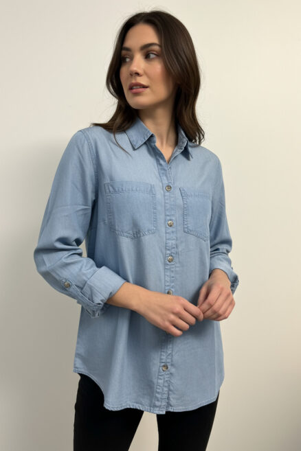 ₡22,900.00Blusa en denim liviano y mangas arrollablesSMLXL -