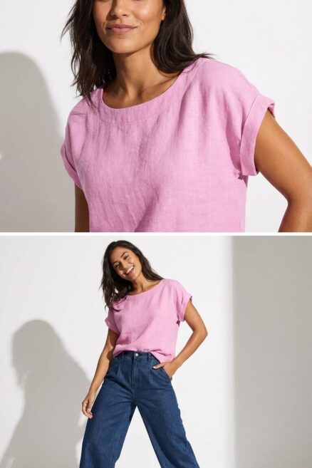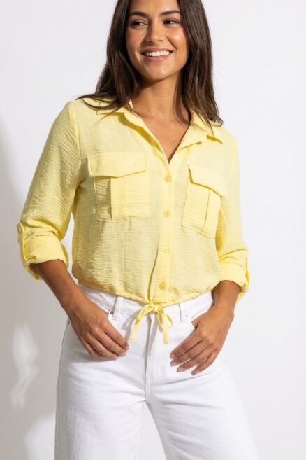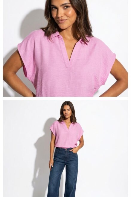 ₡16,900.00Blusa con doblez en las mangas y textura imitación linoSMLXL -
