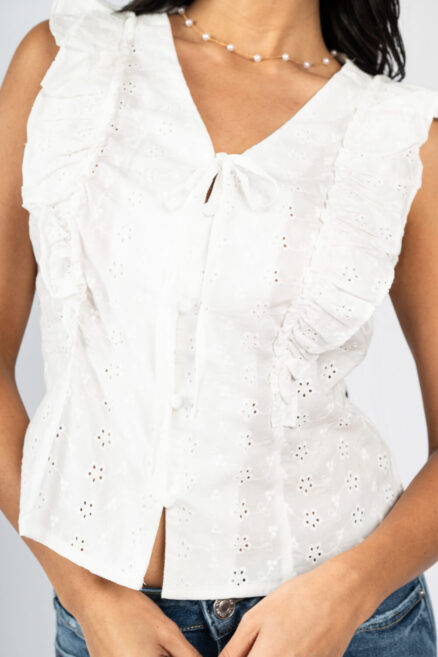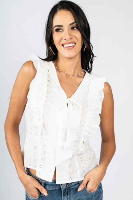 ₡19,900.00Blusa en librete con lacito y mini vuelosSML -