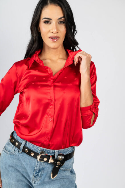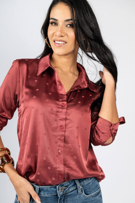 ₡21,900.00Blusas camisera en satín con estampado de puntosSMLXL -