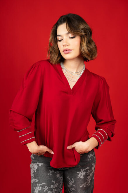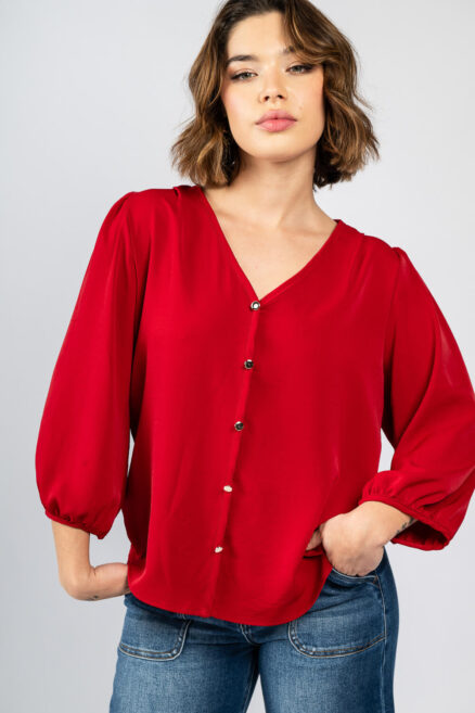 Blusa con pinza en las mangas y cierre de ojal en la espalda