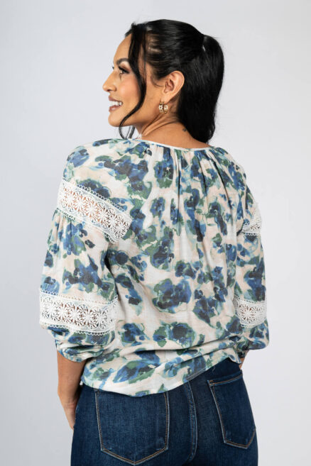 Blusa con aplicación en las mangas y estampado abstracto de flores