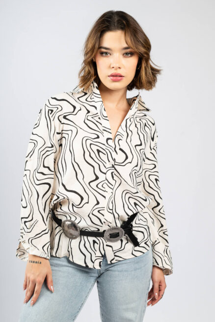 ₡21,900.00Blusa con aplicación en las mangas y estampado abstracto de floresSMLXL -