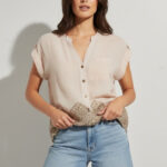Blusa camisera de rayas con mezcla de lino
