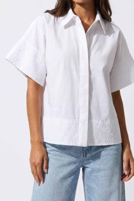Blusa escote en V con aplicación y textura plumeti