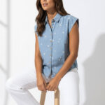 Blusa denim con rayas blancas