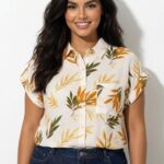 Blusa con bolsillo y estampado de hojas
