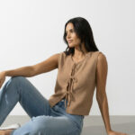 Chaleco en tejido liviano y lacitos femme