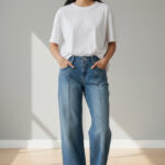 Jeans 90´s Fit Britney talle bajo pierna holgada y ruedo deshilachado