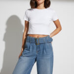 Jeans pierna ancha talle alto con pasa fajas doble D. Jeans