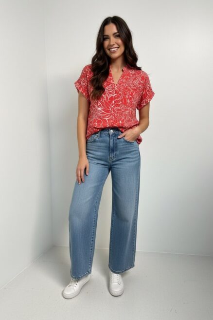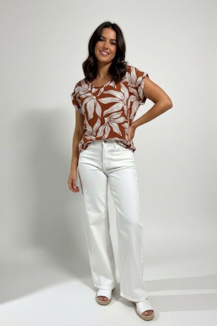 Blusa con textura acanalada y cuello redondo