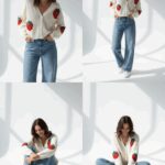 Sweater tipo cardigan con mega fresas