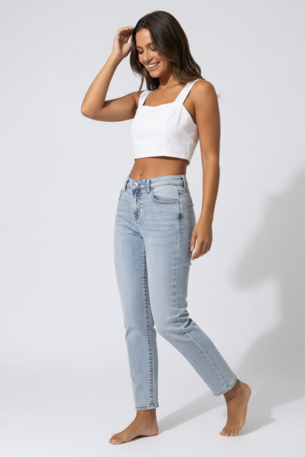 Jeans skinny talle alto con detalles rasgados al tobillo ENJEAN