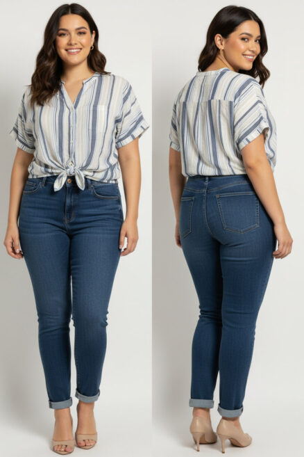 Blusa con mangas volteadas y textura vertical