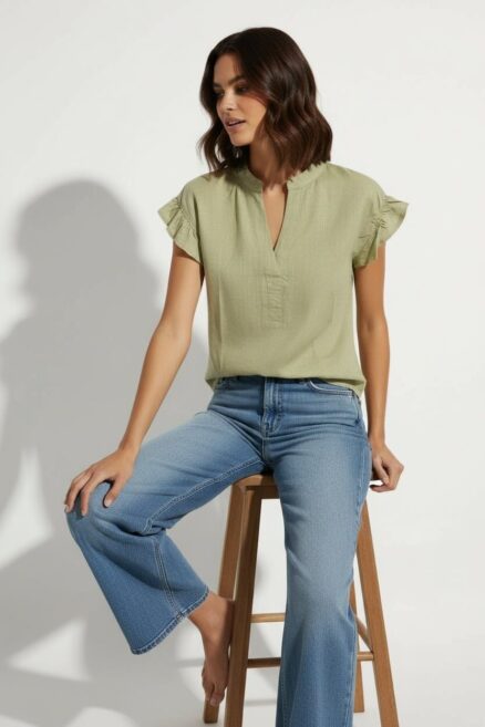 Blusa con costuras horizontales y mangas voladas