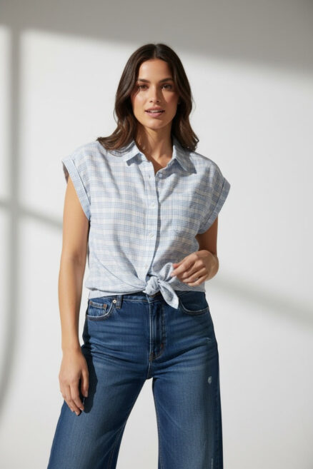 Blusa de amarrar con un bolsillo y cuadros medianos