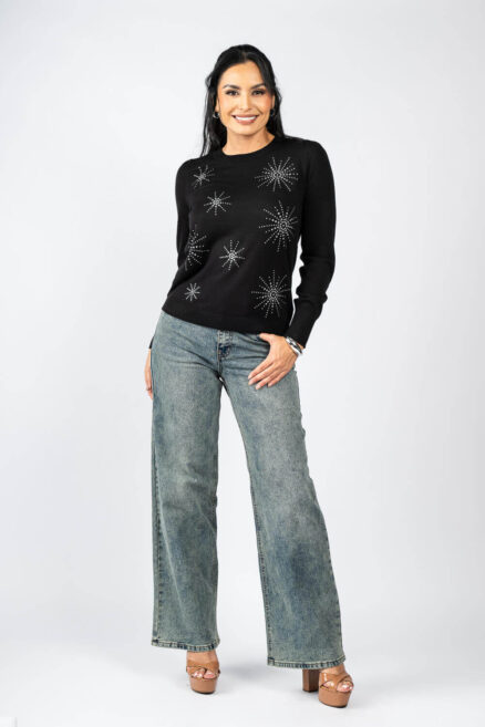 Jeans holgado (loose fit) con detalle de tachuelas laterales