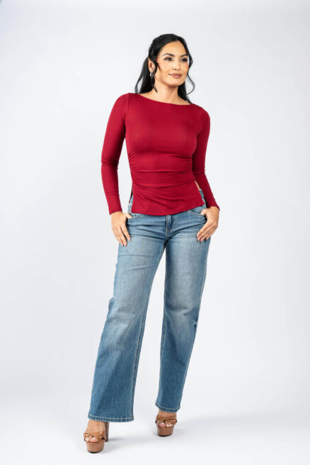 Jeans baggy con detalle de costuras y doble pasa fajas YMI